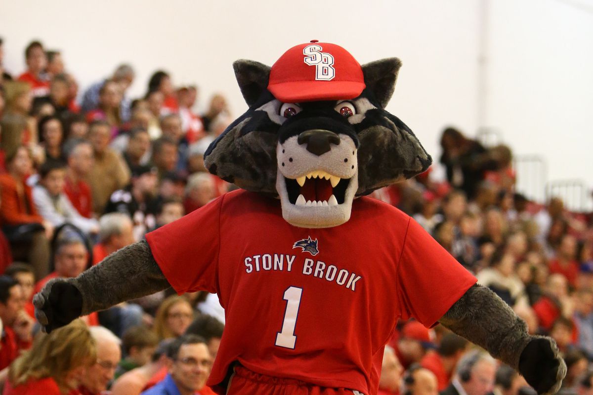 This mascot is the perfect way to make a Seawolf. Since it is a mythical creature there is nothing really to base it off of, unlike the Spiders or Duke Dog or a Tiger. Stony Brook makes this guy look almost cool, dressed in his red baseball cap and jersey he is ready to go at all sporting events.